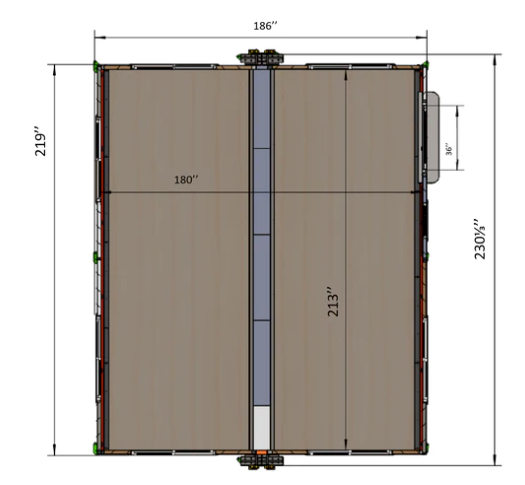 L234.8*W198.8*H100 inches/268sq.ft/89.4 Indoor height |